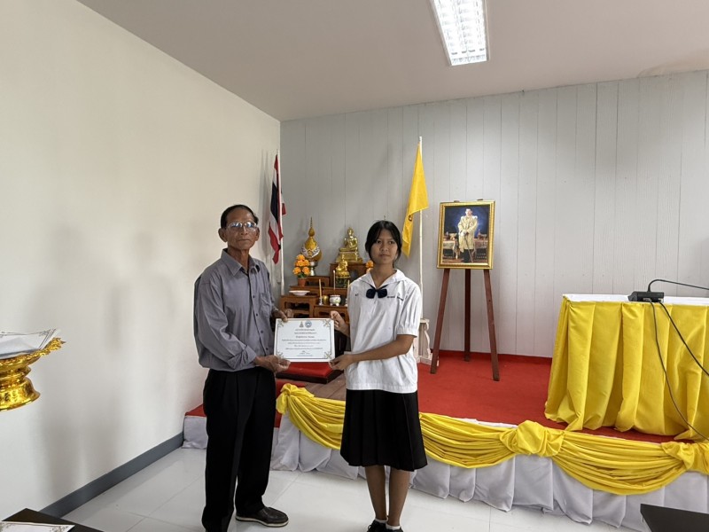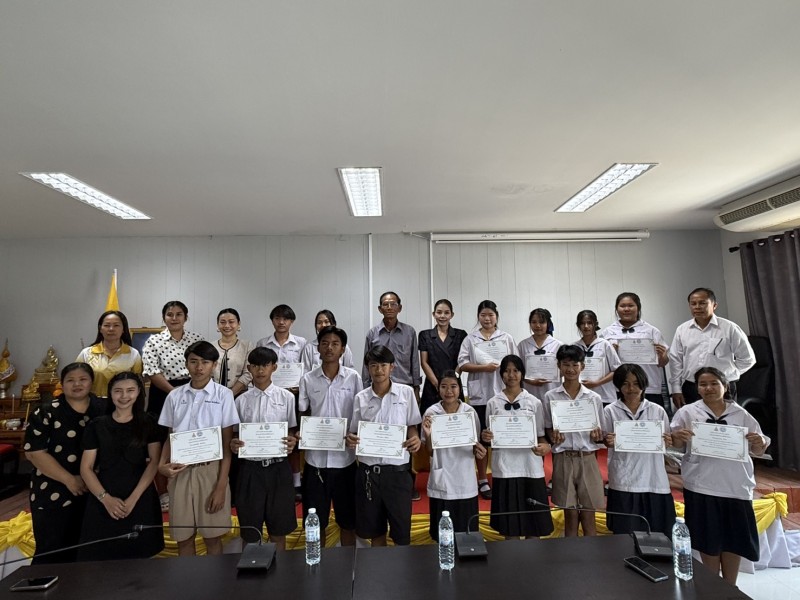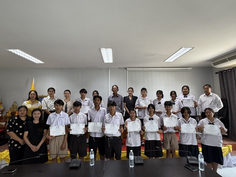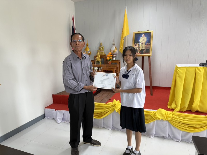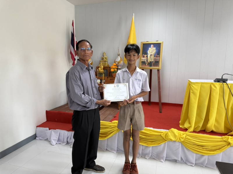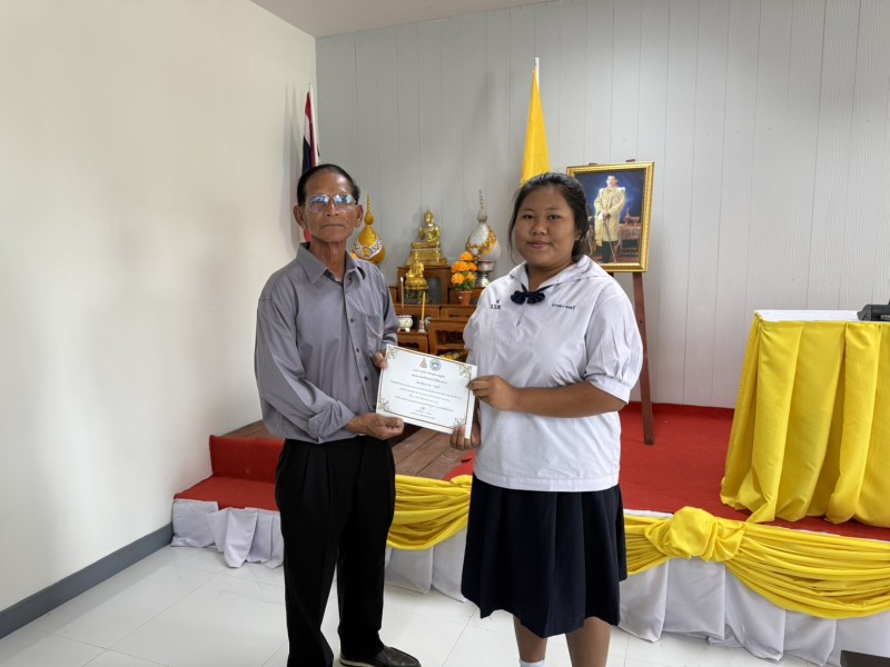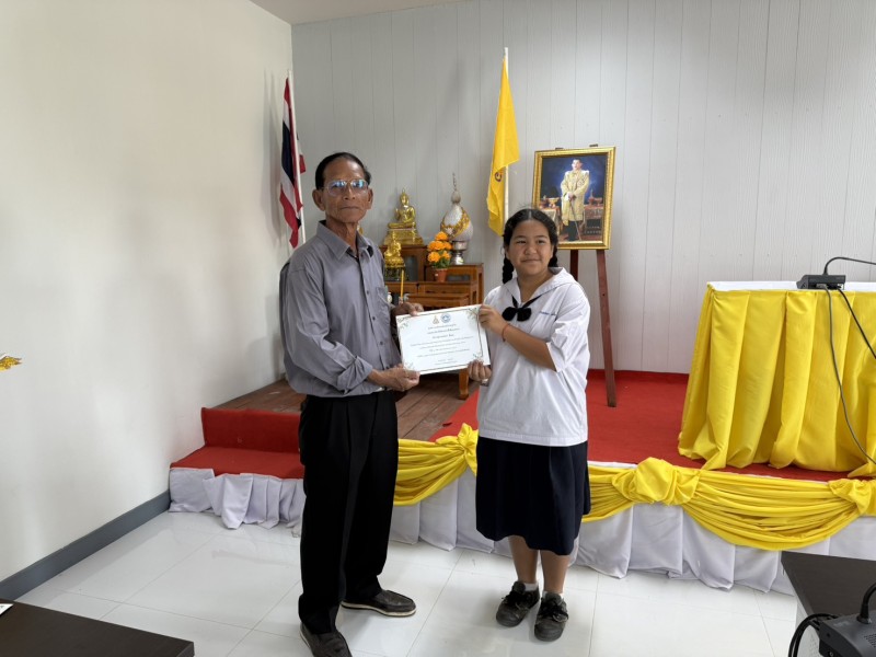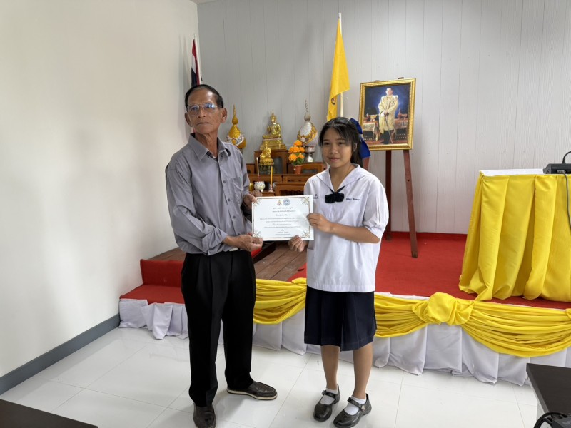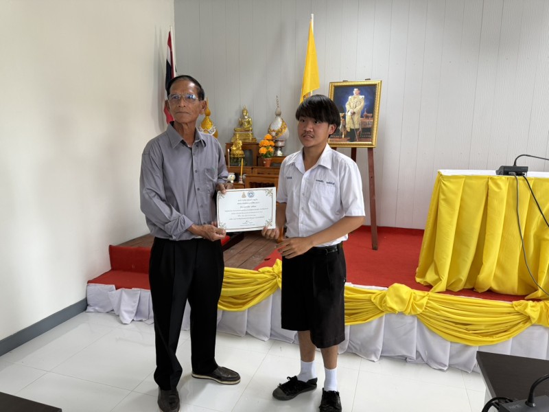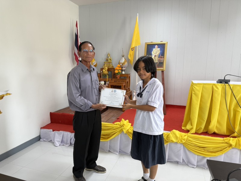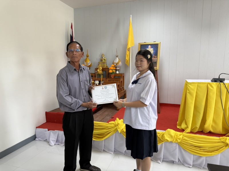 พิธีมอบเกียรติบัตรสำหรับนักเรียนที่เป็นสมาชิกสภาเด็กและเยาวชนตำบลภูเงิน